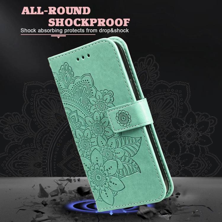 For Xiaomi 15T Pro 5G Seven-petal Flowers Embossing Leather Phone Case(Green)