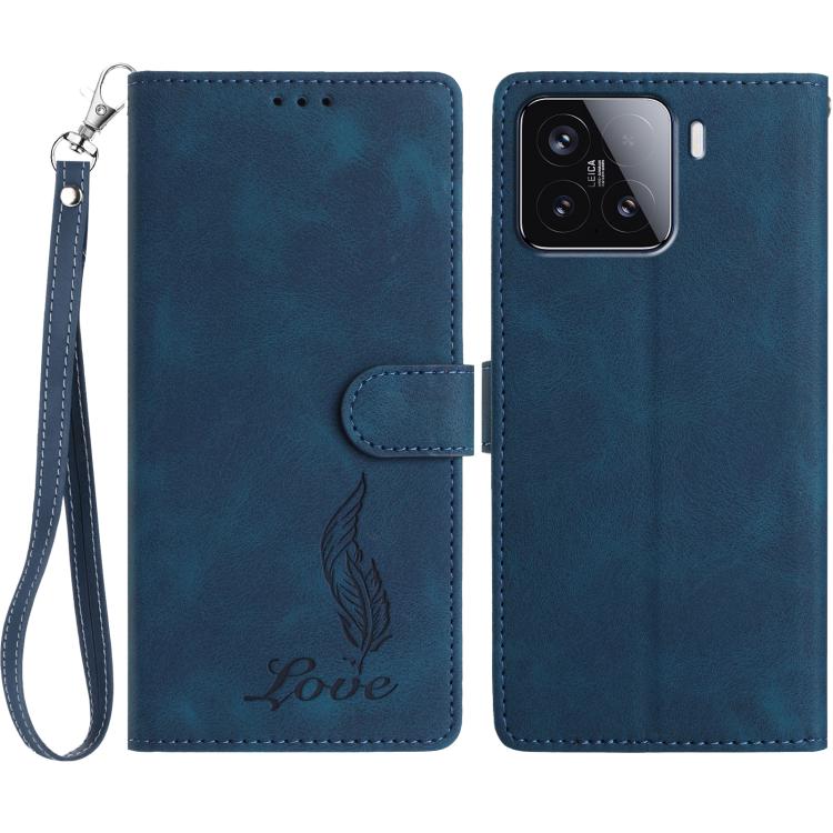 For Xiaomi 15T Pro 5G Skin Feel Embossed Feather Leather Phone Case(Dark Blue)