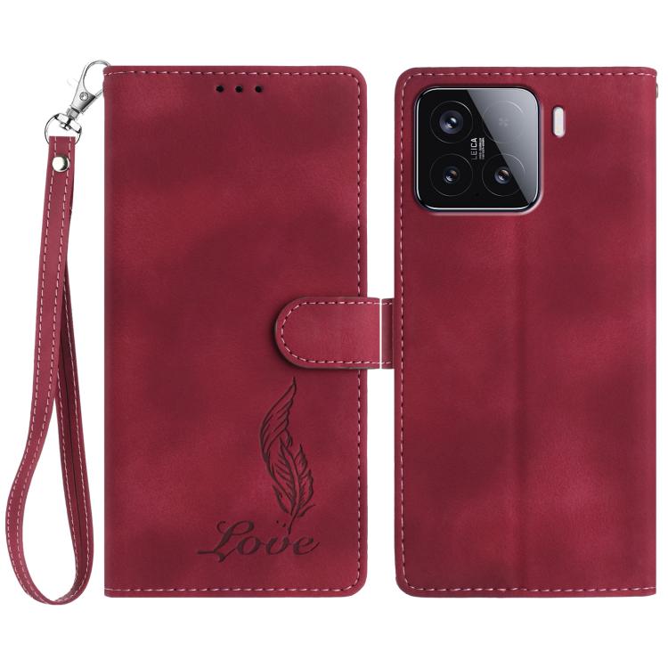 For Xiaomi 15T Pro 5G Skin Feel Embossed Feather Leather Phone Case(Red)