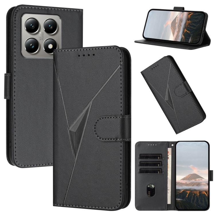 For Xiaomi 15T Pro 5G Triangle Pattern Buckle Clasp Leather Phone Case(Black)