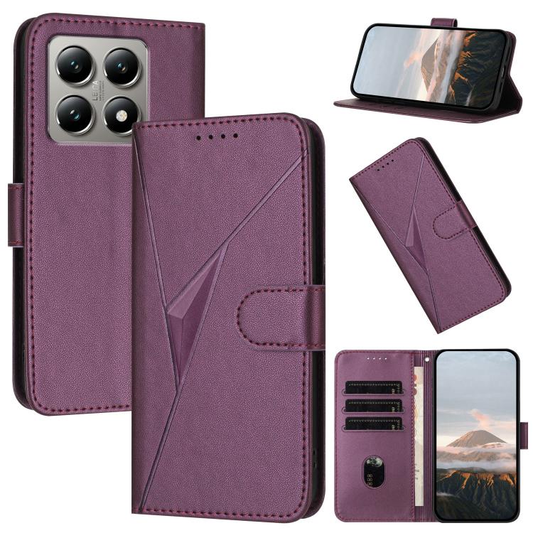 For Xiaomi 15T Pro 5G Triangle Pattern Buckle Clasp Leather Phone Case(Dark Purple)
