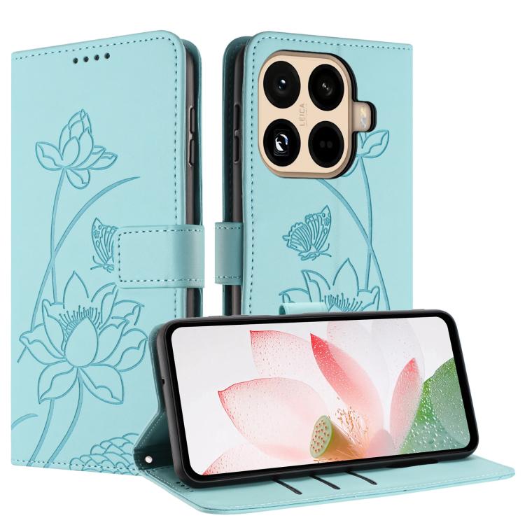 For Xiaomi 15T Pro Lotus Embossed Leather Phone Case with Lanyard(Green)