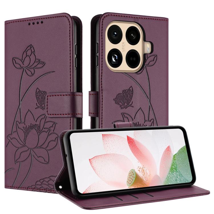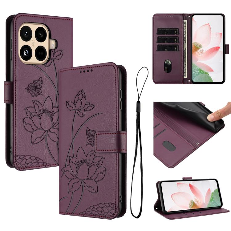 For Xiaomi 15T Pro Lotus Embossed Leather Phone Case with Lanyard(Wine Red)