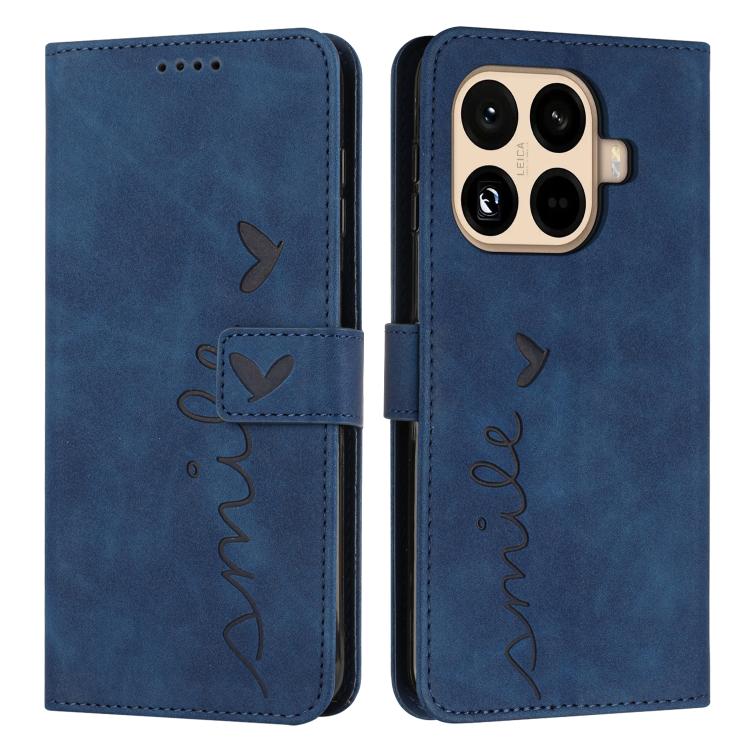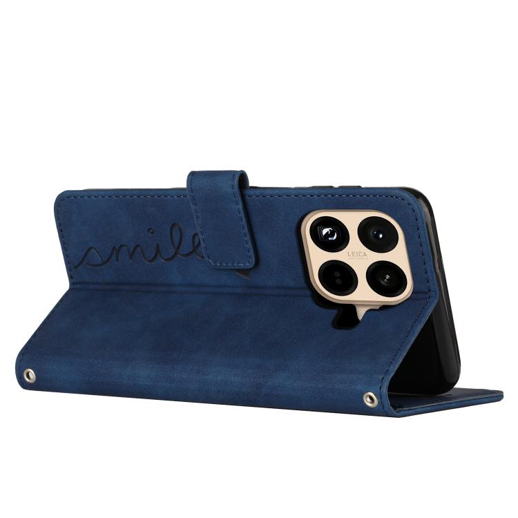 For Xiaomi 15T Pro Skin Feel Heart Embossed Leather Phone Case with Long Lanyard(Blue)