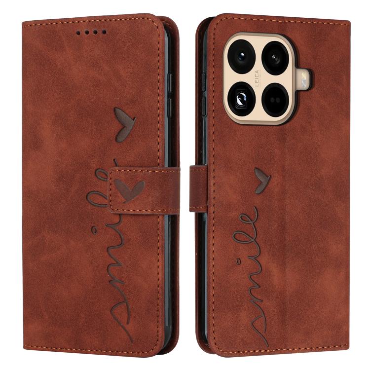 For Xiaomi 15T Pro Skin Feel Heart Embossed Leather Phone Case with Long Lanyard(Brown)