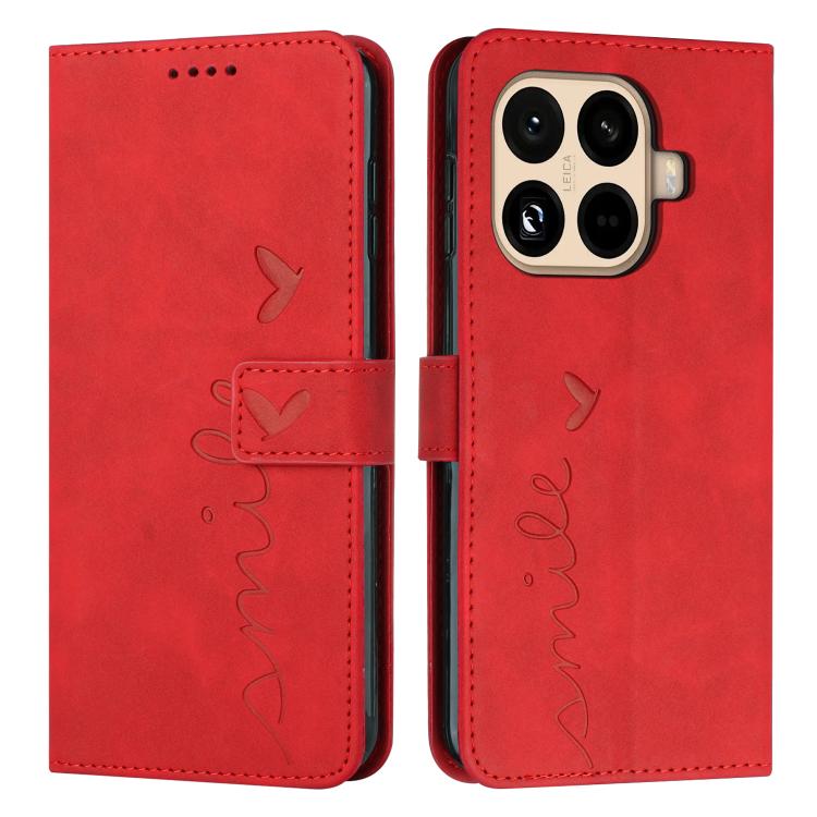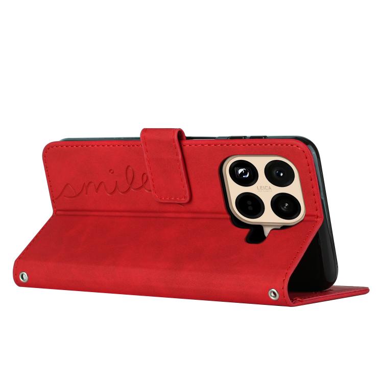 For Xiaomi 15T Pro Skin Feel Heart Embossed Leather Phone Case with Long Lanyard(Red)