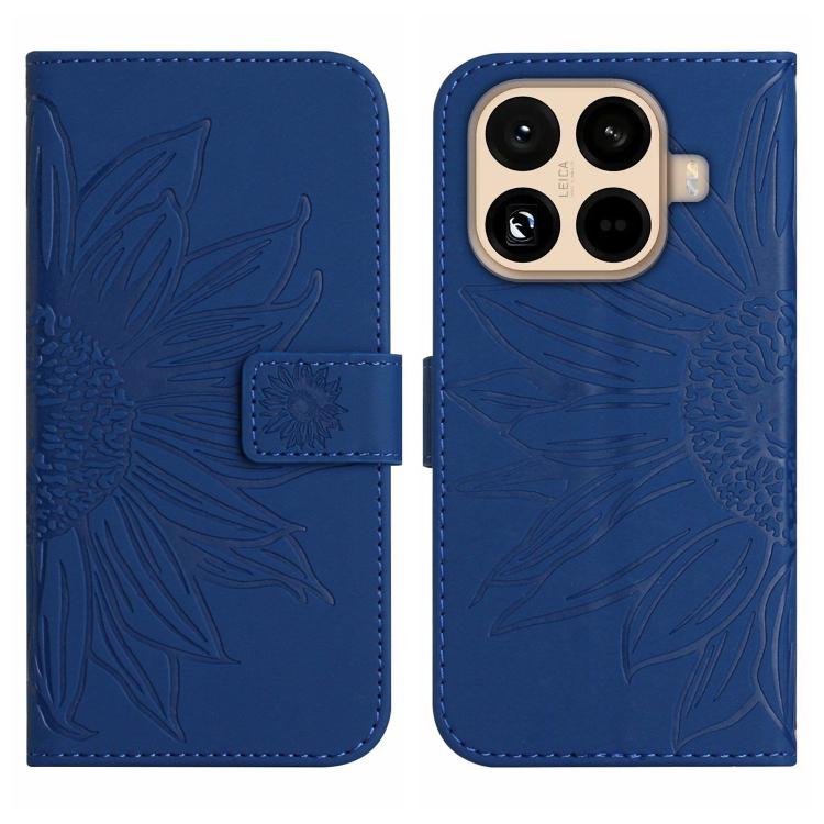 For Xiaomi 15T Pro Skin Feel Sun Flower Embossed Flip Leather Phone Case with Lanyard(Dark Blue)