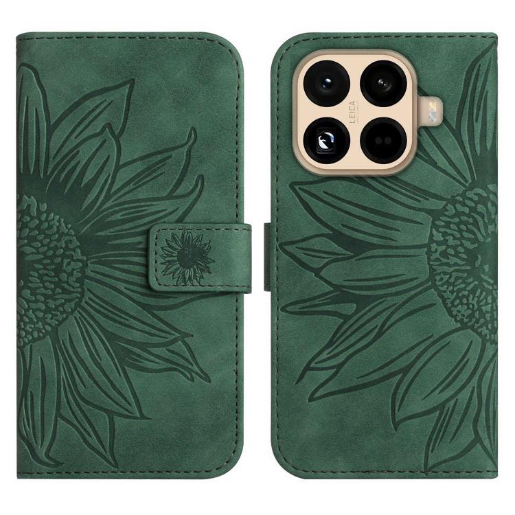 For Xiaomi 15T Pro Skin Feel Sun Flower Embossed Flip Leather Phone Case with Lanyard(Green)