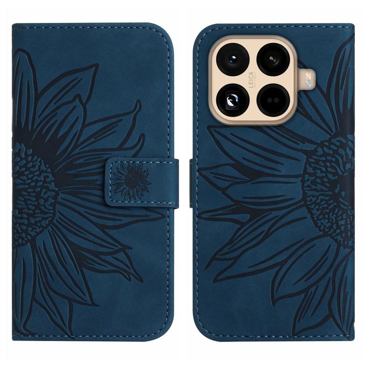 For Xiaomi 15T Pro Skin Feel Sun Flower Embossed Flip Leather Phone Case with Lanyard(Inky Blue)