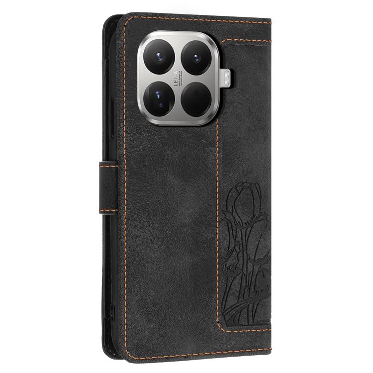 For Xiaomi 15T Pro Tulips Embossed Leather Phone Case with Lanyard(Black)