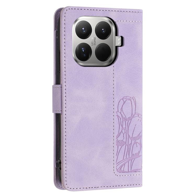 For Xiaomi 15T Pro Tulips Embossed Leather Phone Case with Lanyard(Purple)