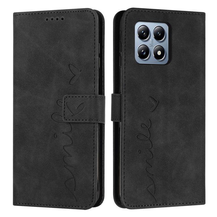 For Xiaomi 15T Skin Feel Heart Embossed Leather Phone Case with Long Lanyard(Black)