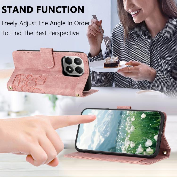 For Xiaomi 15T Tulips Embossed Leather Phone Case with Lanyard(Pink)