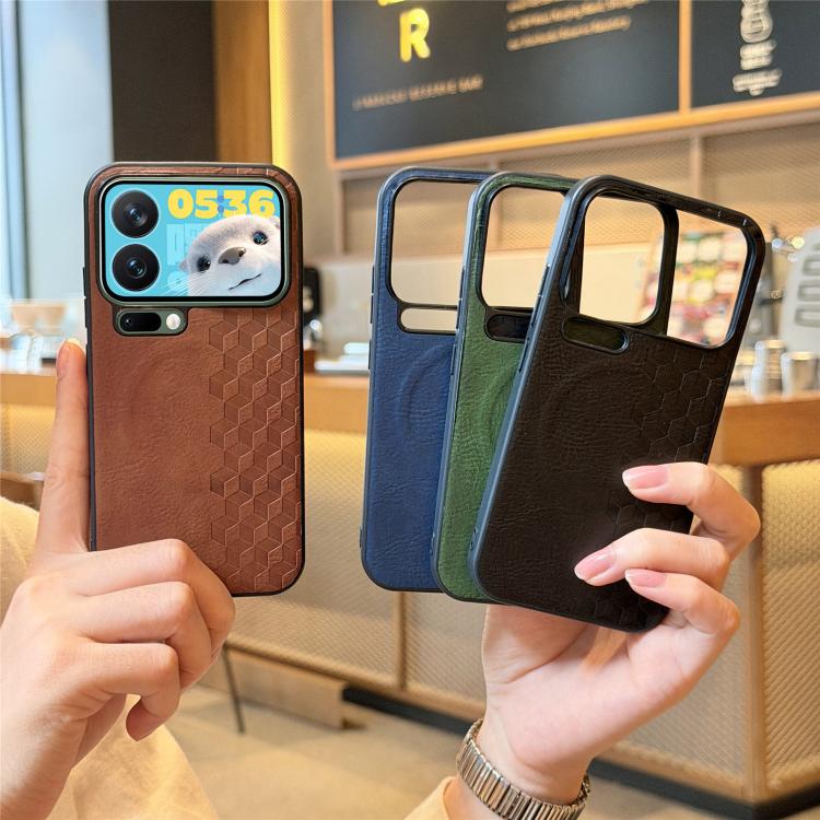 For Xiaomi 17 Pro 3D Cubic Grid Pressed Magnetic PU Back Cover Phone Case(Black)