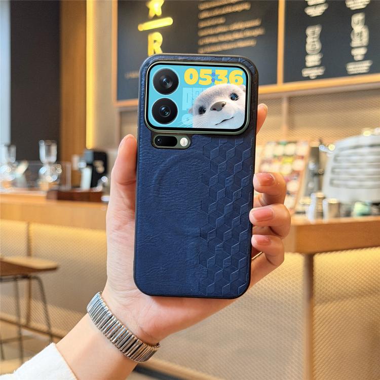 For Xiaomi 17 Pro 3D Cubic Grid Pressed Magnetic PU Back Cover Phone Case(Blue)