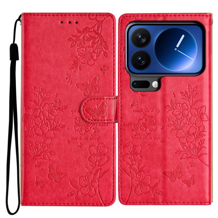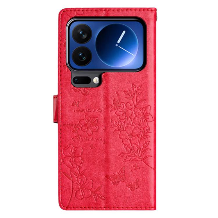 For Xiaomi 17 Pro Butterflies and Flowers Leather Phone Case(Red)