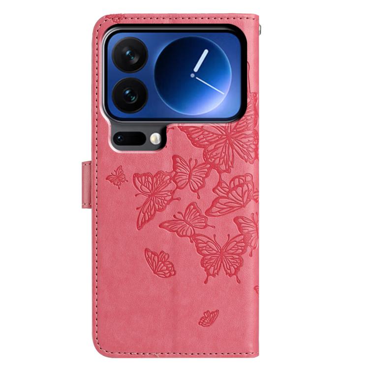 For Xiaomi 17 Pro Butterfly Flutter Pattern Embossed Leather Phone Case(Rose Red)