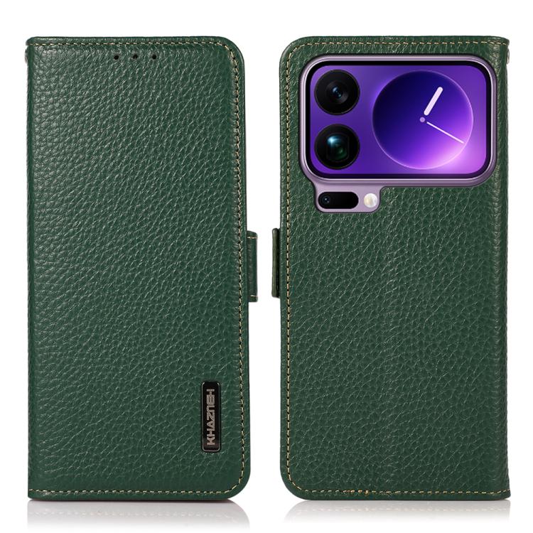 For Xiaomi 17 Pro KHAZNEH Side-Magnetic Litchi Genuine Leather RFID Phone Case(Green)