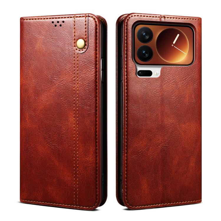For Xiaomi 17 Pro Max Oil Wax Crazy Horse Texture Leather Phone Case(Brown)