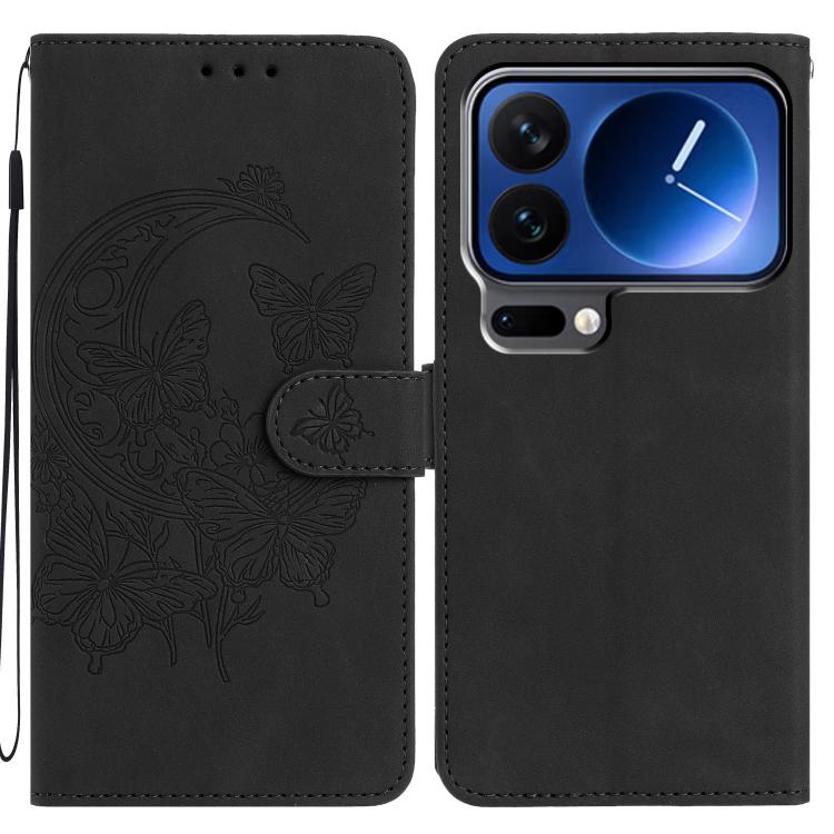 For Xiaomi 17 Pro Moonlit Butterfly Dance Pattern Embossed Leather Phone Case(Black)