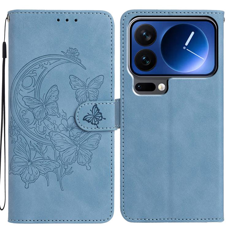 For Xiaomi 17 Pro Moonlit Butterfly Dance Pattern Embossed Leather Phone Case(Blue)