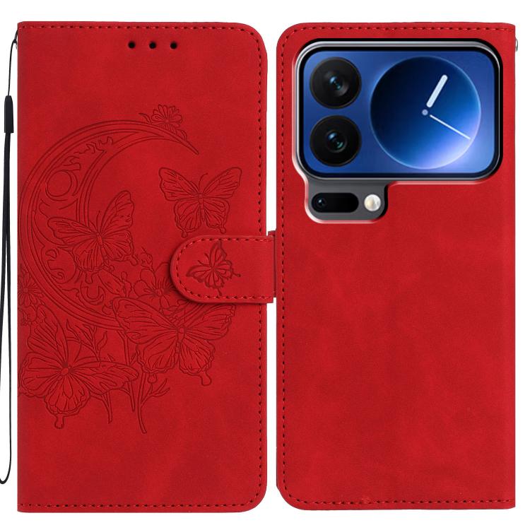 For Xiaomi 17 Pro Moonlit Butterfly Dance Pattern Embossed Leather Phone Case(Red)