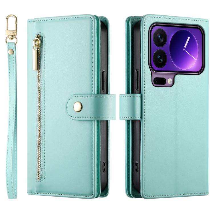 For Xiaomi 17 Pro Nine Card-slot Zipper Wallet Bag Leather Phone Case(Mint Green)