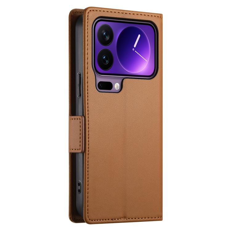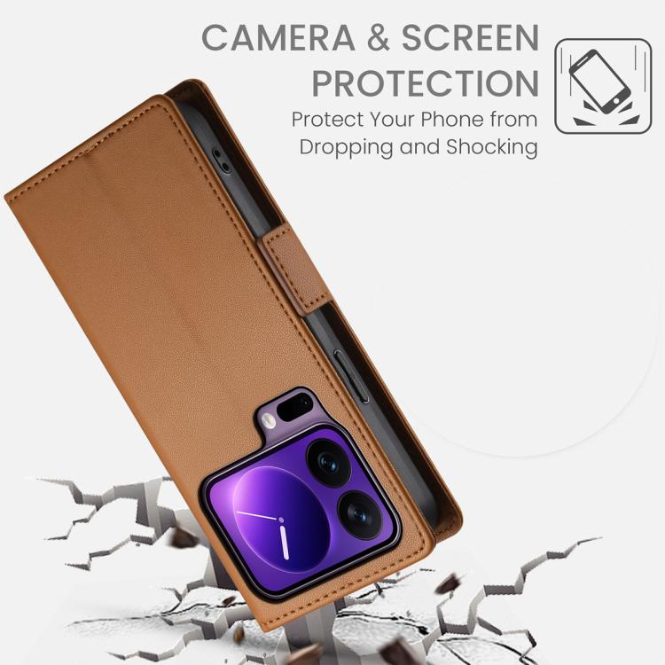 For Xiaomi 17 Pro Side Buckle Magnetic Frosted Leather Phone Case(Brown)