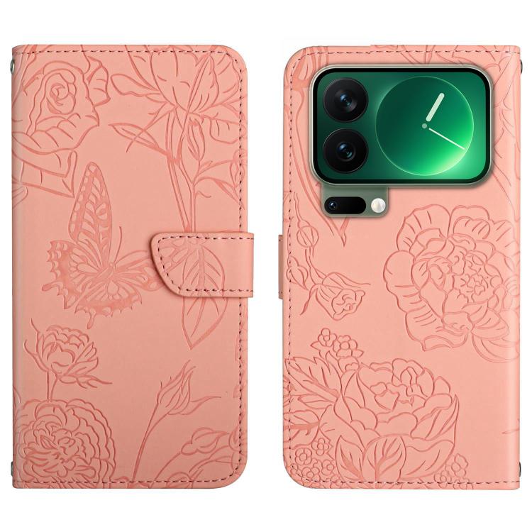 For Xiaomi 17 Pro Skin Feel Butterfly Embossed Flip Leather Phone Case(Pink)