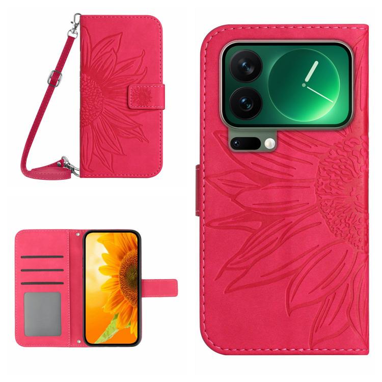 For Xiaomi 17 Pro Skin Feel Sun Flower Embossed Flip Leather Phone Case with Lanyard(Rose Red)