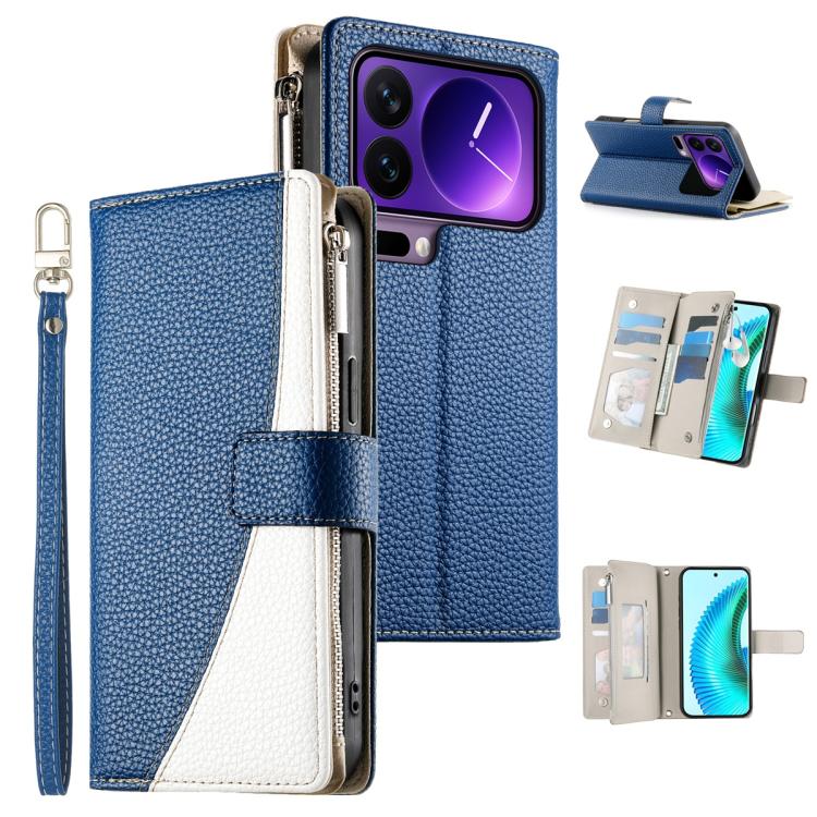 For Xiaomi 17 Pro Stitching Multi-card Zipper Wallet Leather Phone Case with Short Strap(Dark Blue)