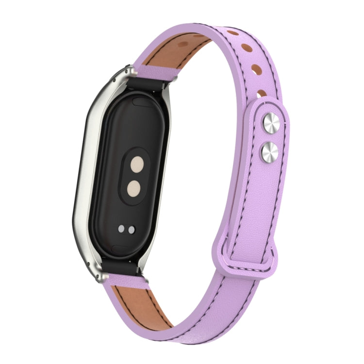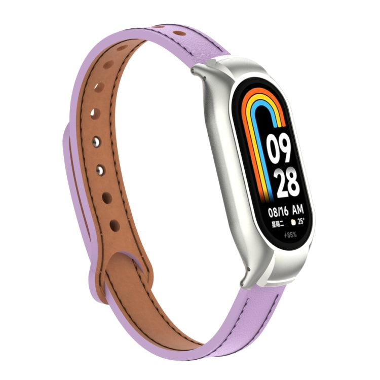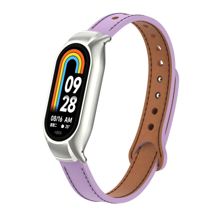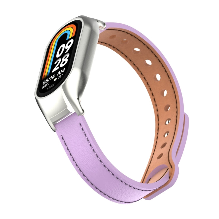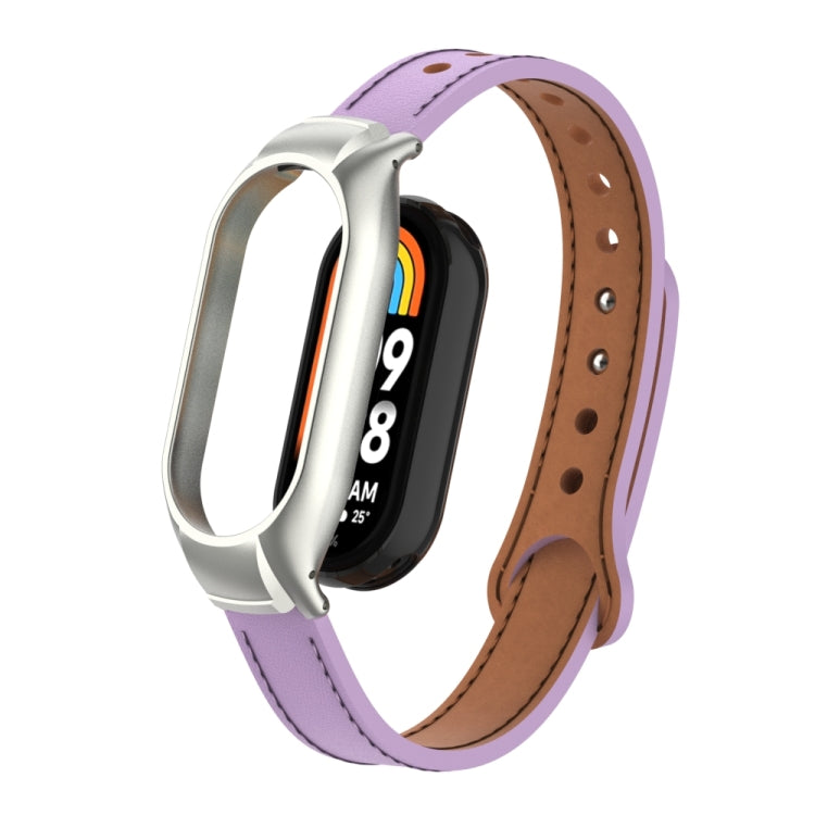 For Xiaomi Mi Band 8 Integrated Metal Case + Double Nail Microfiber Leather Watch Band(Pink Purple)