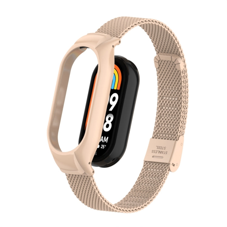 For Xiaomi Mi Band 8 Integrated Metal Case + Steel Mesh Buckle Watch Band(Milk Tea Color)
