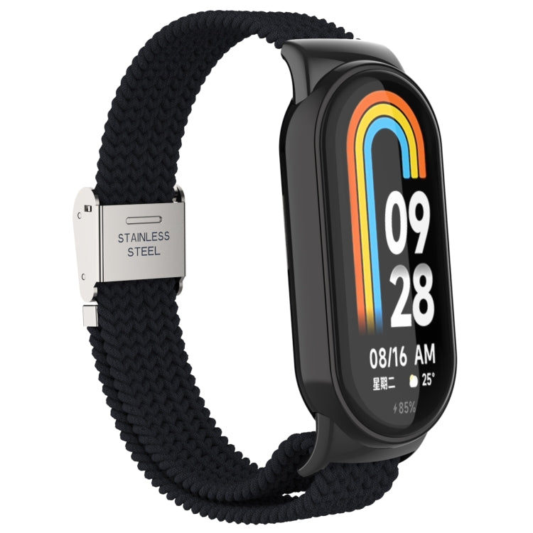 For Xiaomi Mi Band 8 Metal Head + Adjustable Nylon Braided Steel Buckle Watch Band(Black)