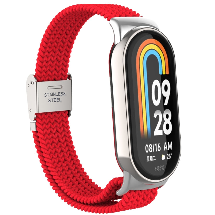 For Xiaomi Mi Band 8 Metal Head + Adjustable Nylon Braided Steel Buckle Watch Band(Red)