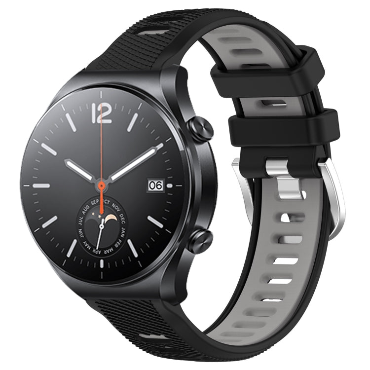 For Xiaomi MI Watch S1 22mm Sports Two-Color Steel Buckle Silicone Watch Band(Black+Grey)
