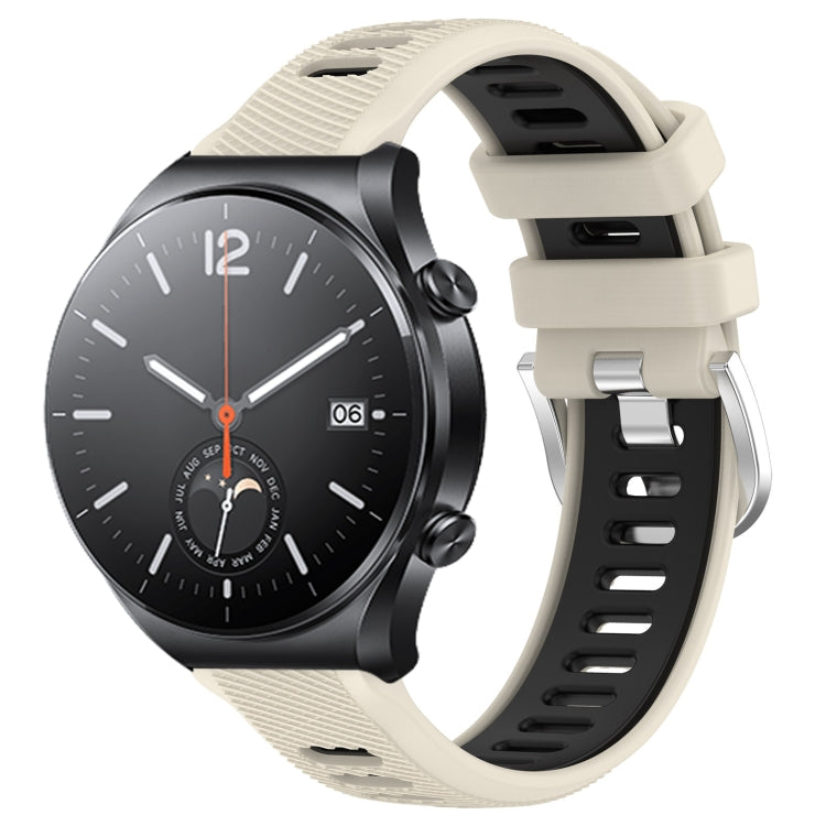 For Xiaomi MI Watch S1 22mm Sports Two-Color Steel Buckle Silicone Watch Band(Starlight+Black)