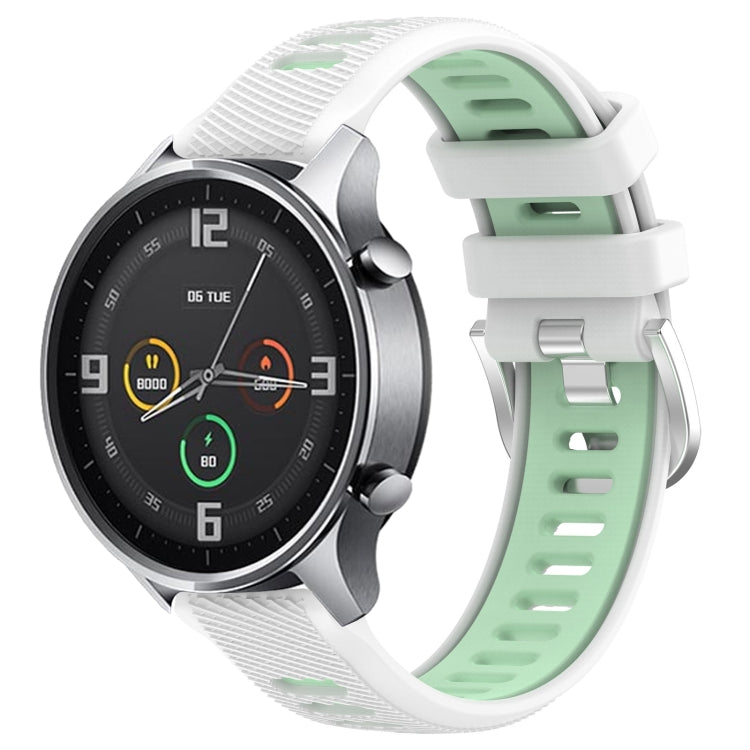 For Xiaomi MI Watch Sport 22mm Sports Two-Color Steel Buckle Silicone Watch Band(White+Teal)