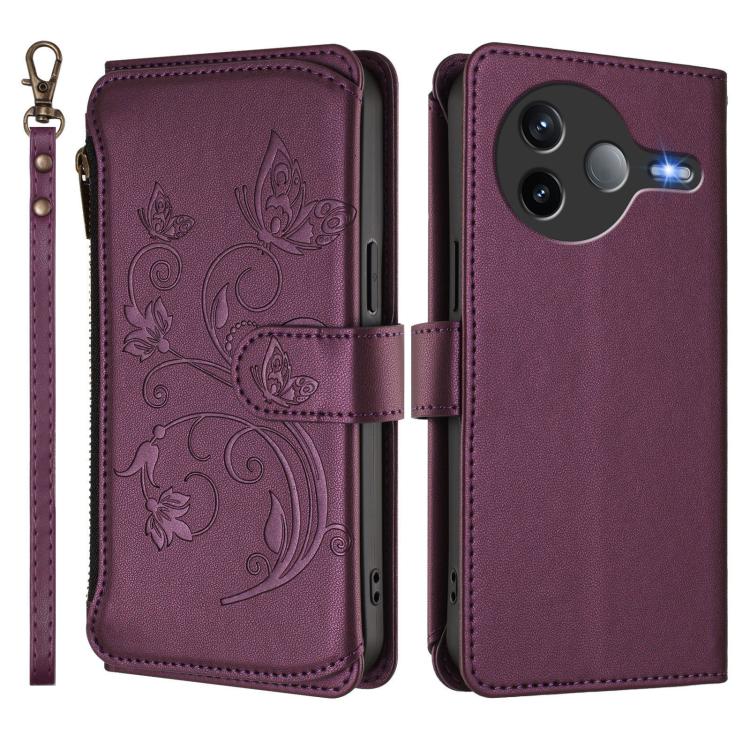 For Xiaomi Poco F7 Pro / Redmi K80 Butterfly Love Flower Multi-card Zipper Wallet Leather Phone Case(Dark Purple)