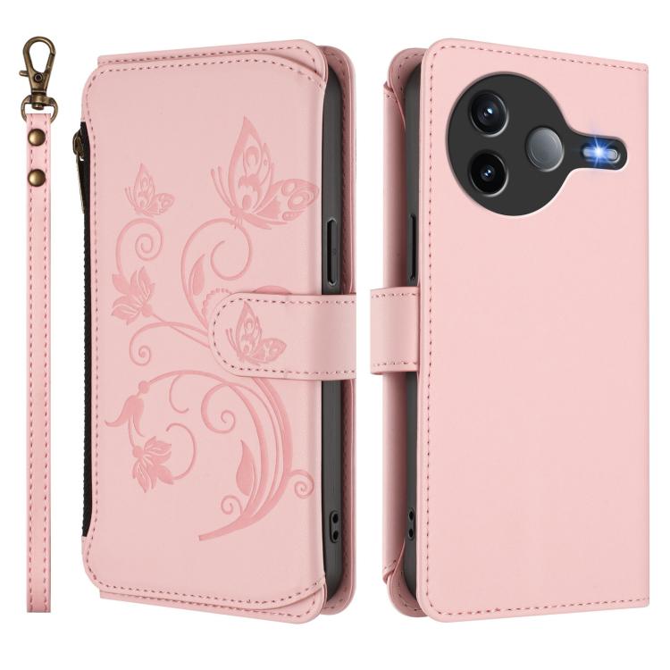 For Xiaomi Poco F7 Pro / Redmi K80 Butterfly Love Flower Multi-card Zipper Wallet Leather Phone Case(Pink)