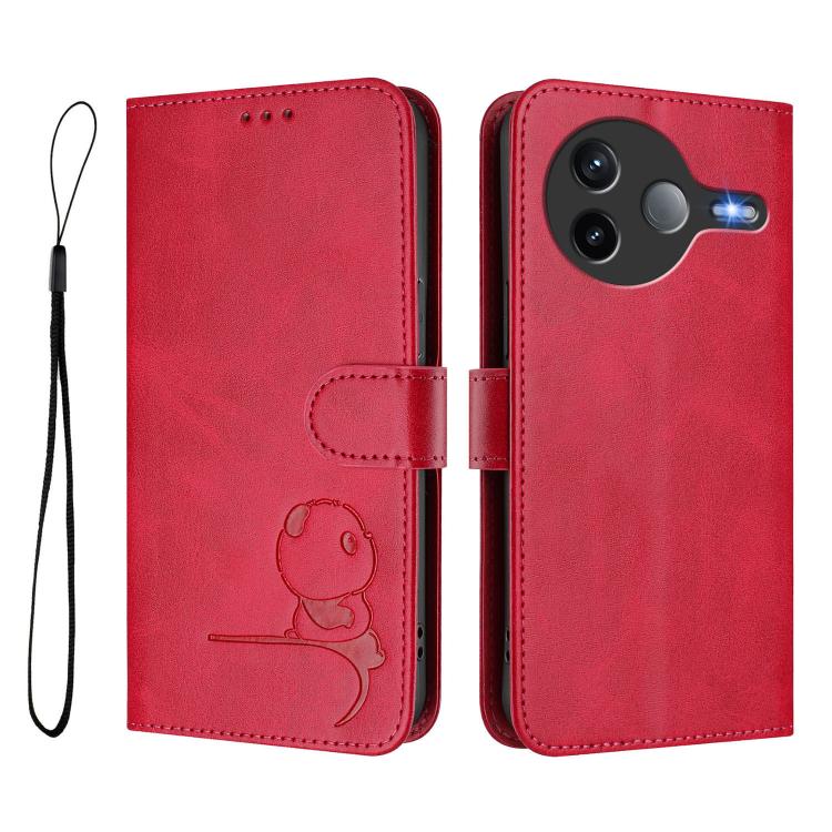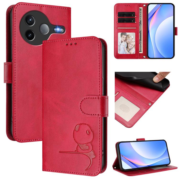 For Xiaomi Poco F7 Pro / Redmi K80 Litter Panda Embossing RFID Leather Phone Case with Lanyard(Rose Red)