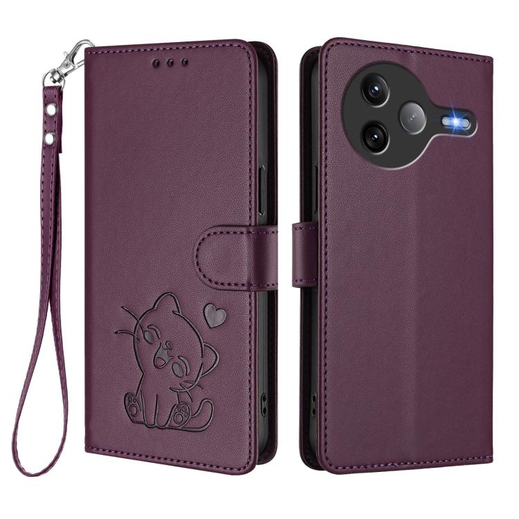 For Xiaomi Poco F7 Ultra 5G / Redmi K80 Pro Embossed Heart Cat Leather Phone Case with Hand Strap(Dark Purple)