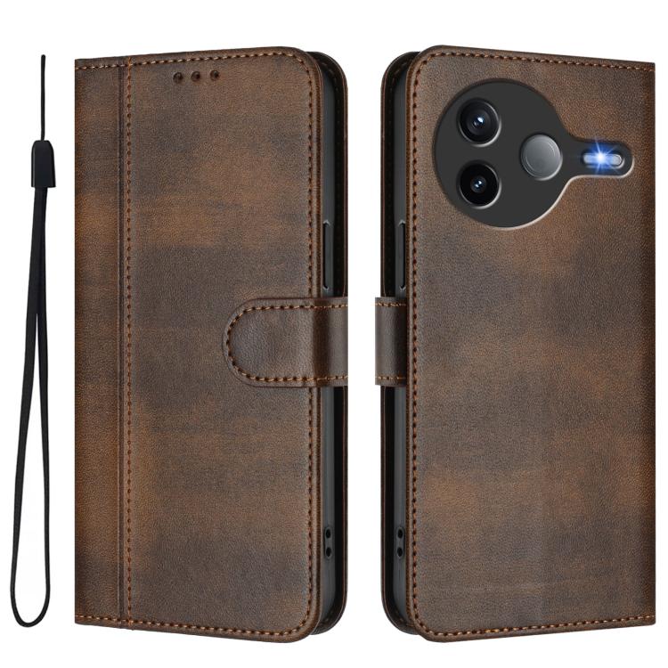 For Xiaomi Poco F7 Ultra 5G / Redmi K80 Pro Line Splicing Buckle Retro Leather Phone Case(Brown)