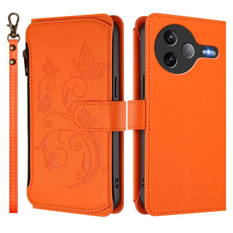 For Xiaomi Poco F7 Ultra / Redmi K80 Pro Butterfly Love Flower Multi-card Zipper Wallet Leather Phone Case(Orange)