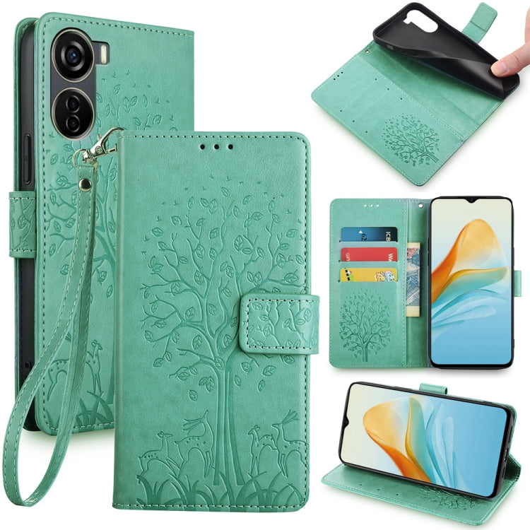 For ZTE Axon 40 Lite 4G Tree & Deer Embossed Leather Phone Case(Green)
