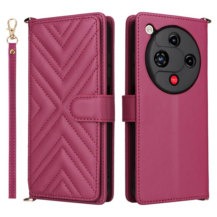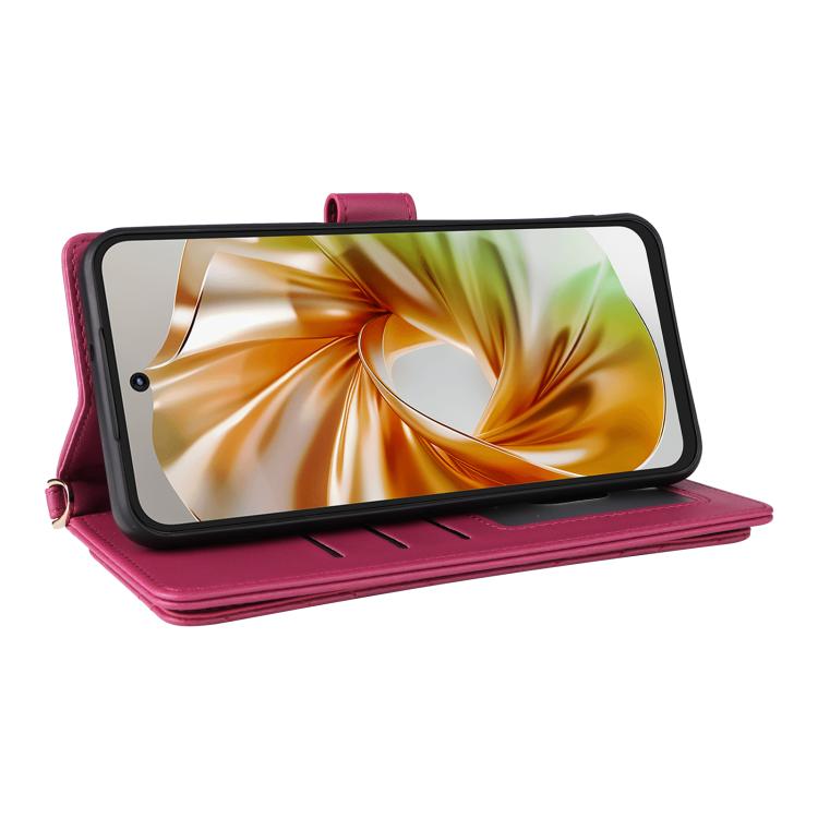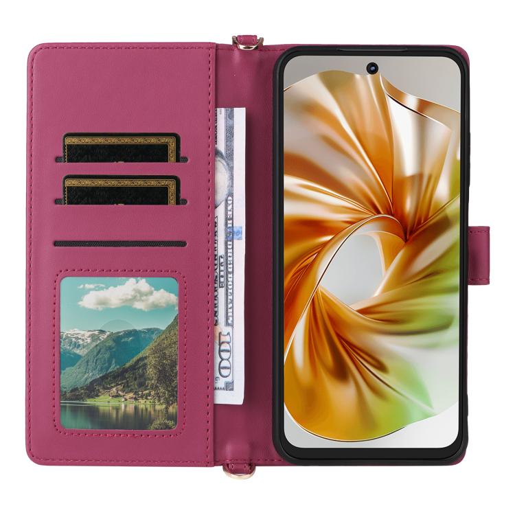 For ZTE nubia Focus 2 5G Multifunctional 6-Card Slots Leather Phone Case with Wrist Strap(Rose Red)