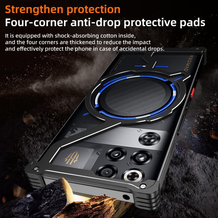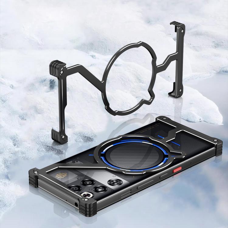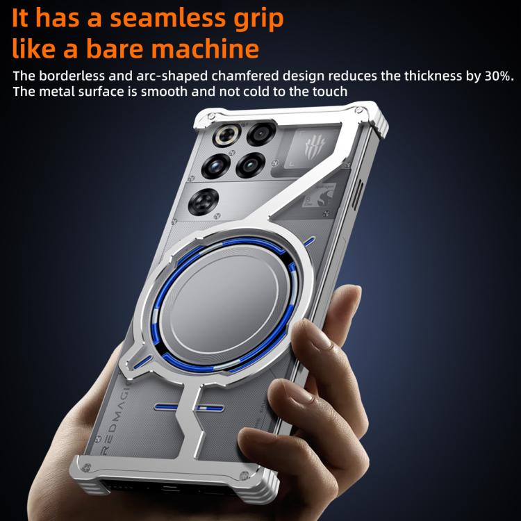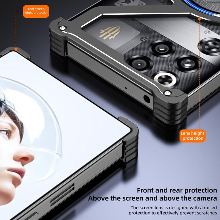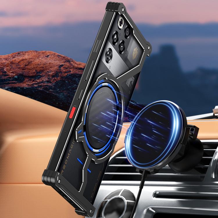 For ZTE nubia Red Magic 11 Pro/11 Pro+ Armor Alloy Borderless Car Magnetic Holder Metal Phone Case(Black Silver)
