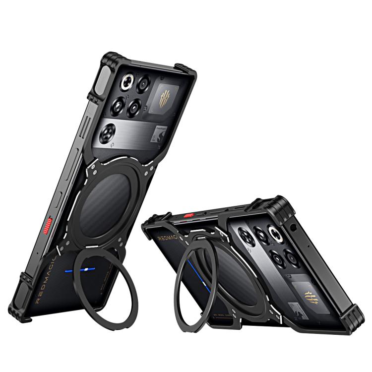 For ZTE nubia Red Magic 11 Pro / 11 Pro+ Mechanical Arm Borderless MagSafe Holder Metal Phone Case(Black Silver)