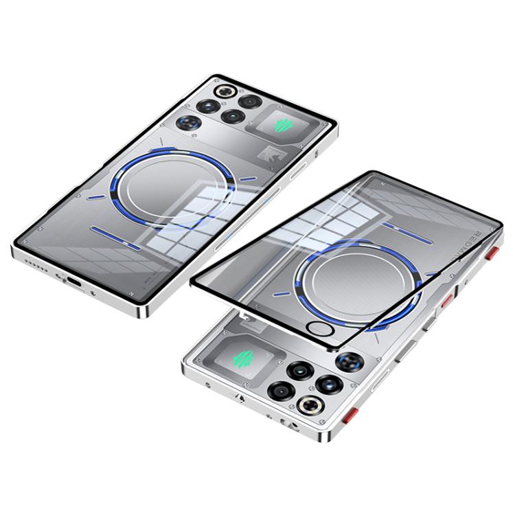 For ZTE nubia Red Magic 11 Pro Snap Buckle Metal Frame Glass Back Panel Phone Case(Silver)