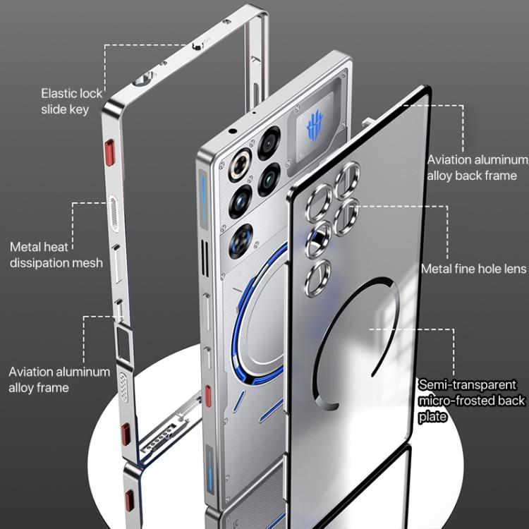 For ZTE nubia RedMagic 11 Pro / 11 Pro+ Single-sided Snap Buckle Metal Frame Frosted MagSafe Phone Case(Black)